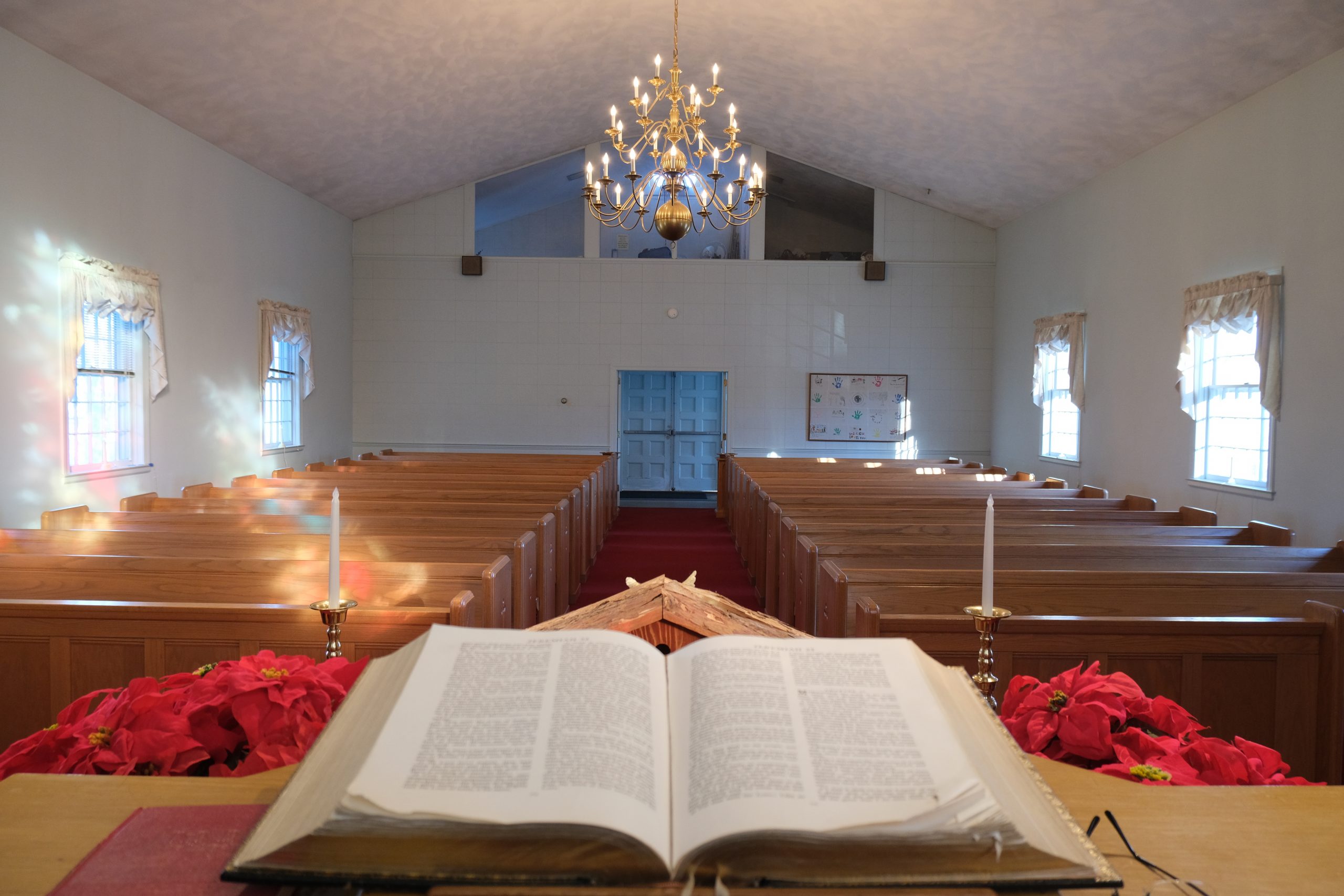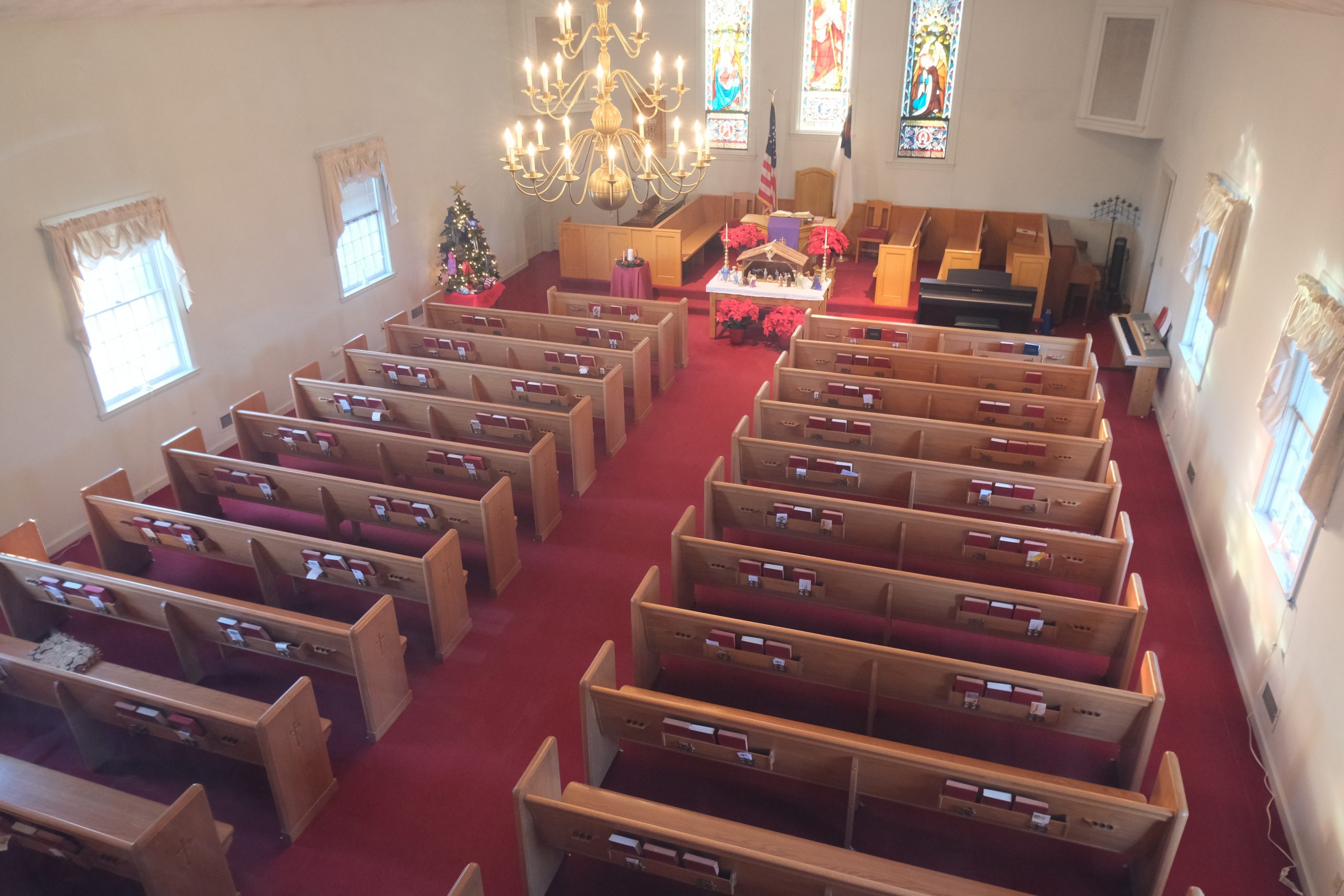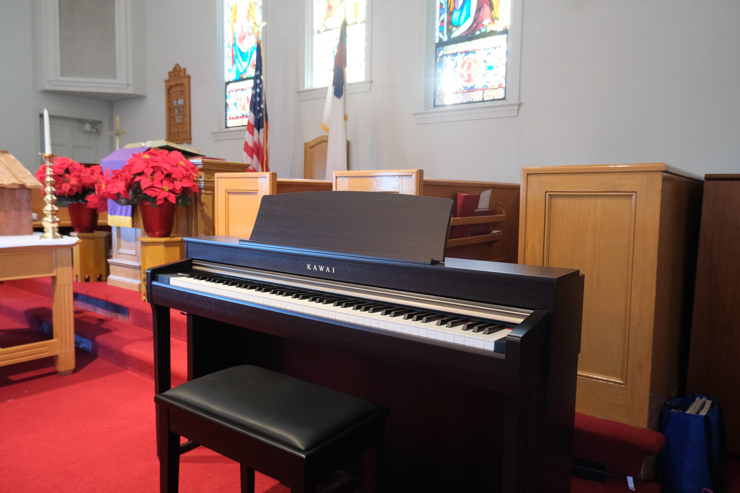 The church sanctuary has a capacity of around 200 people. We use a Kawai CN37 digital keyboard and sing a blend of traditional and contemporary worship music.